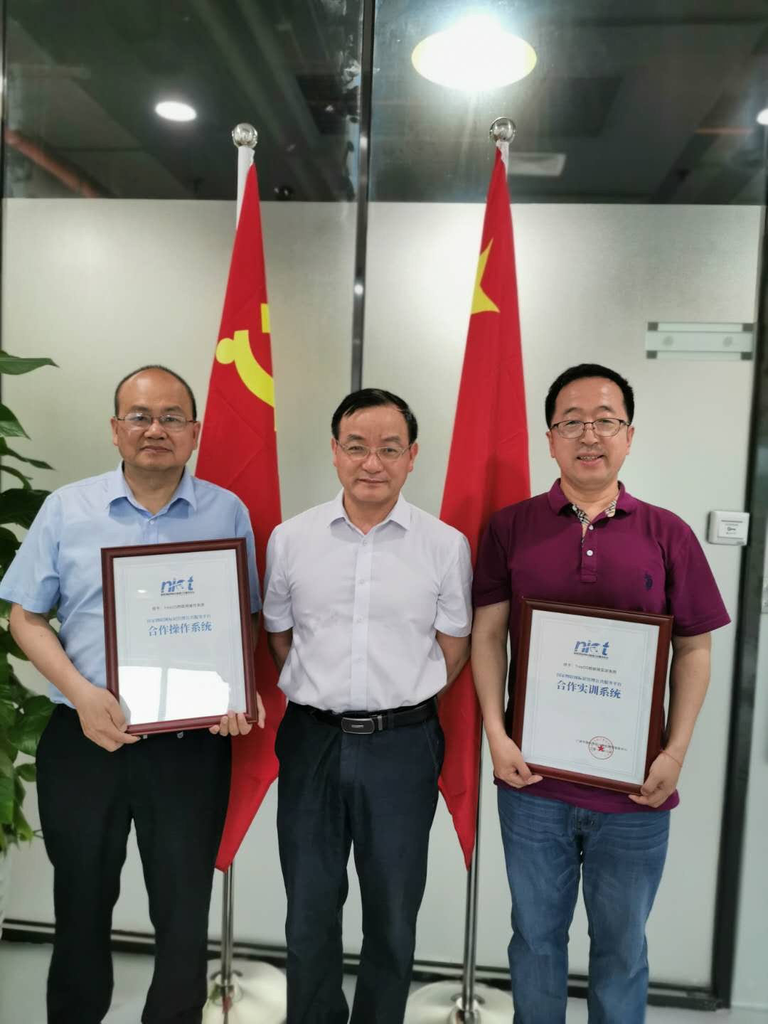 广州中科院计算机网络信息中心肖云主任与光轮电子CEO林添孝、光轮电子COO刘伟权合影留念